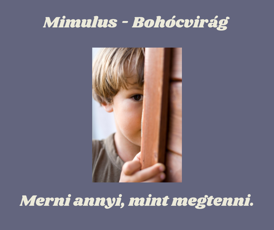 Ebben az esetben a Mimulus – Bohócvirág eszenciára van szükség. Segít bátran közelíteni a dolgokhoz, reális elvárásokkal tekinteni az eseményekre, visszatalálni a személyes erőnkhöz.